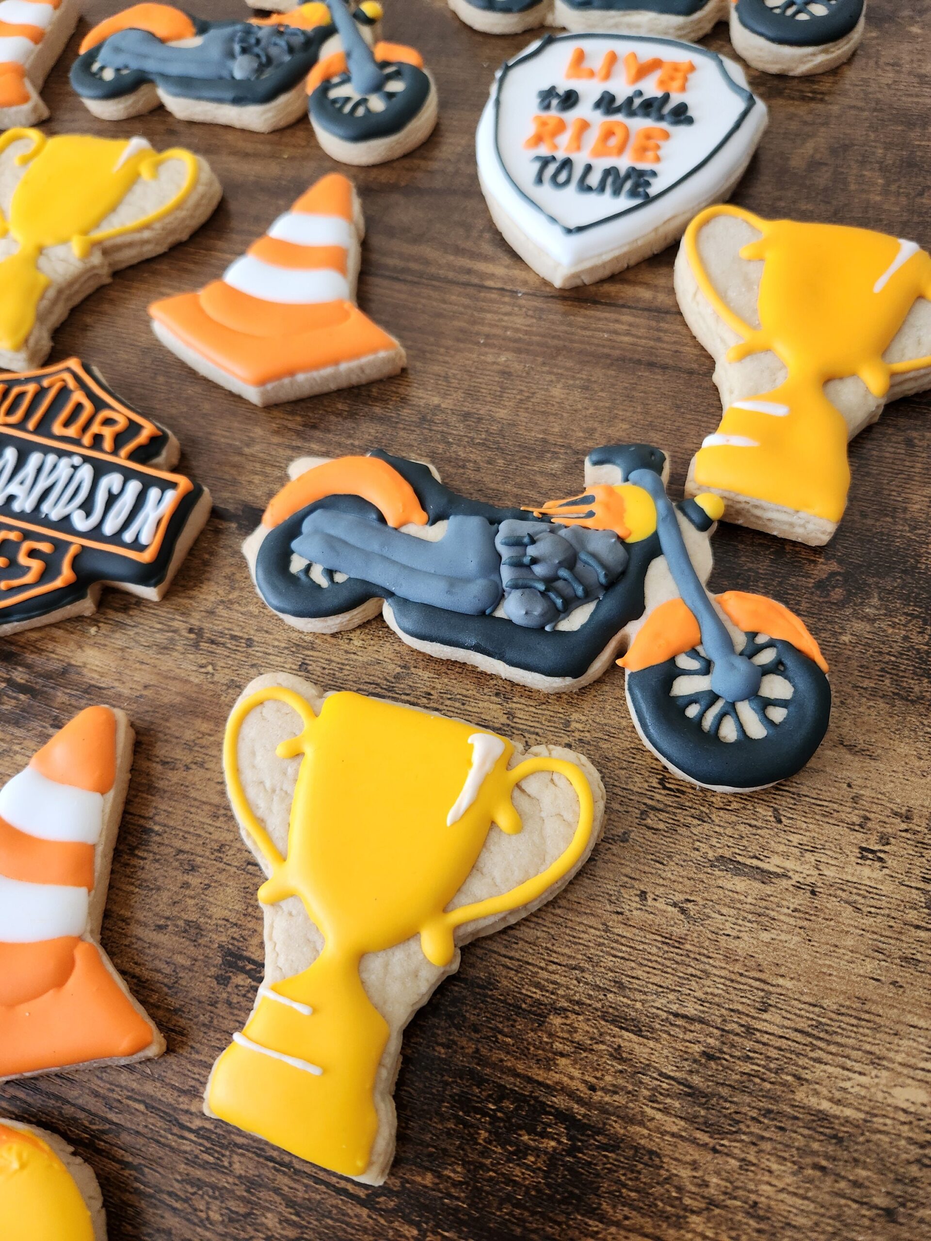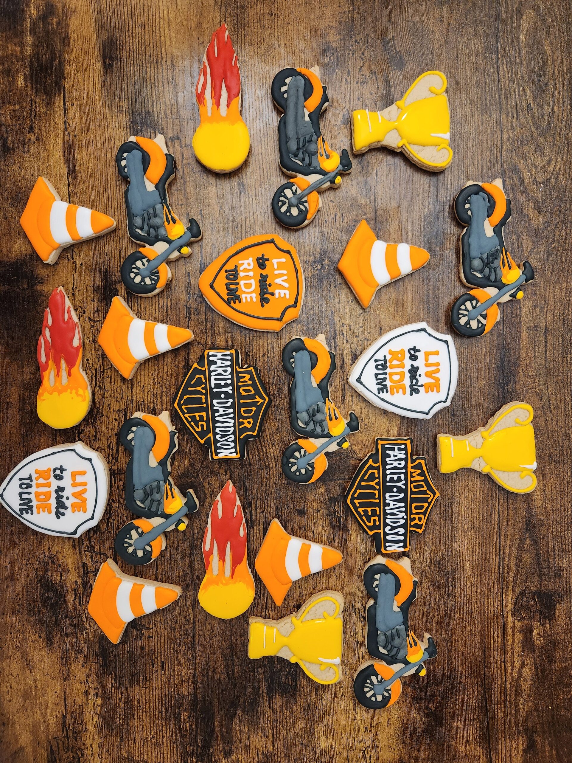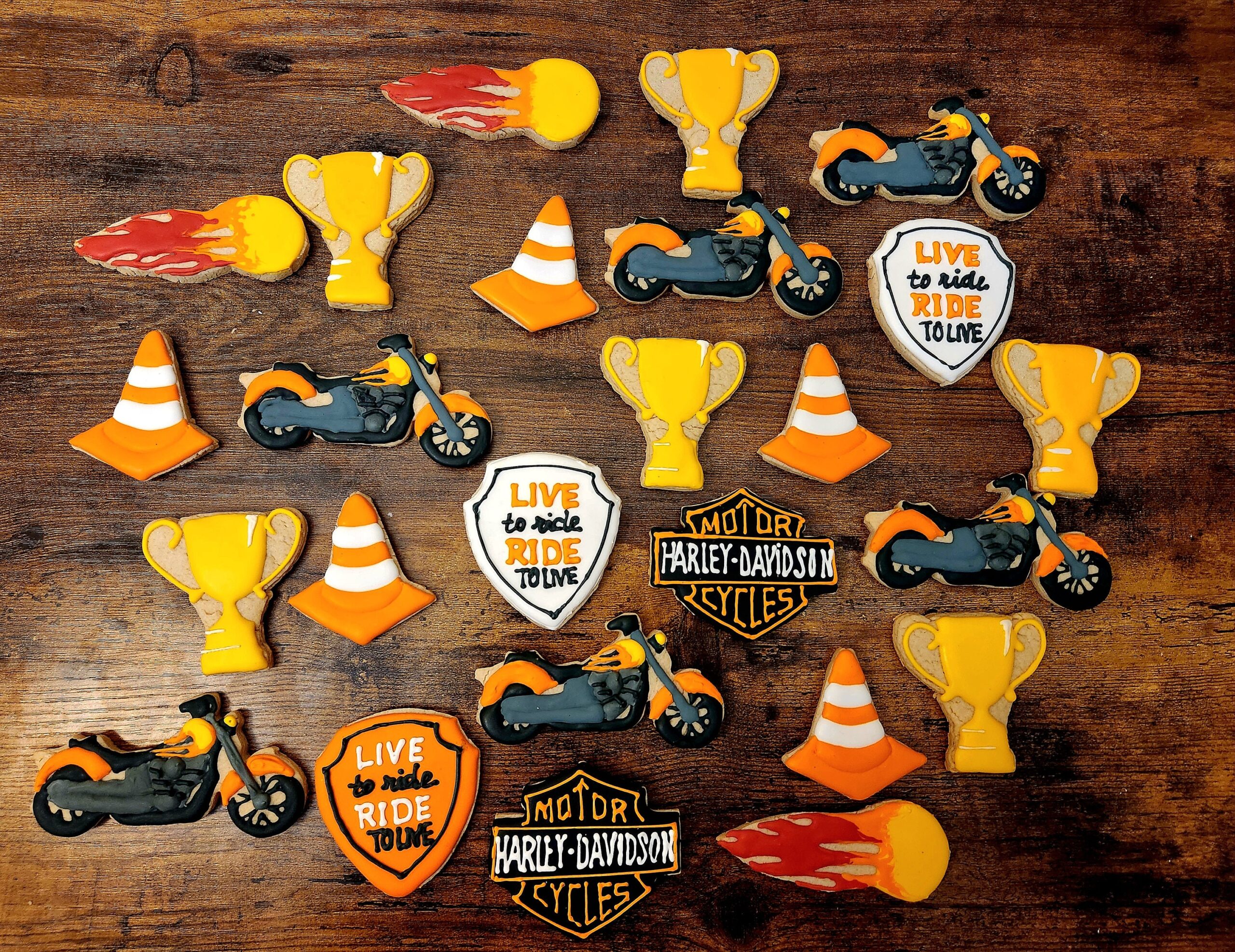 You're viewing: Harley Davidson cookies biker harley logo trophy cookie born to ride to live brown orange bright color customized personilized bike 79.00$