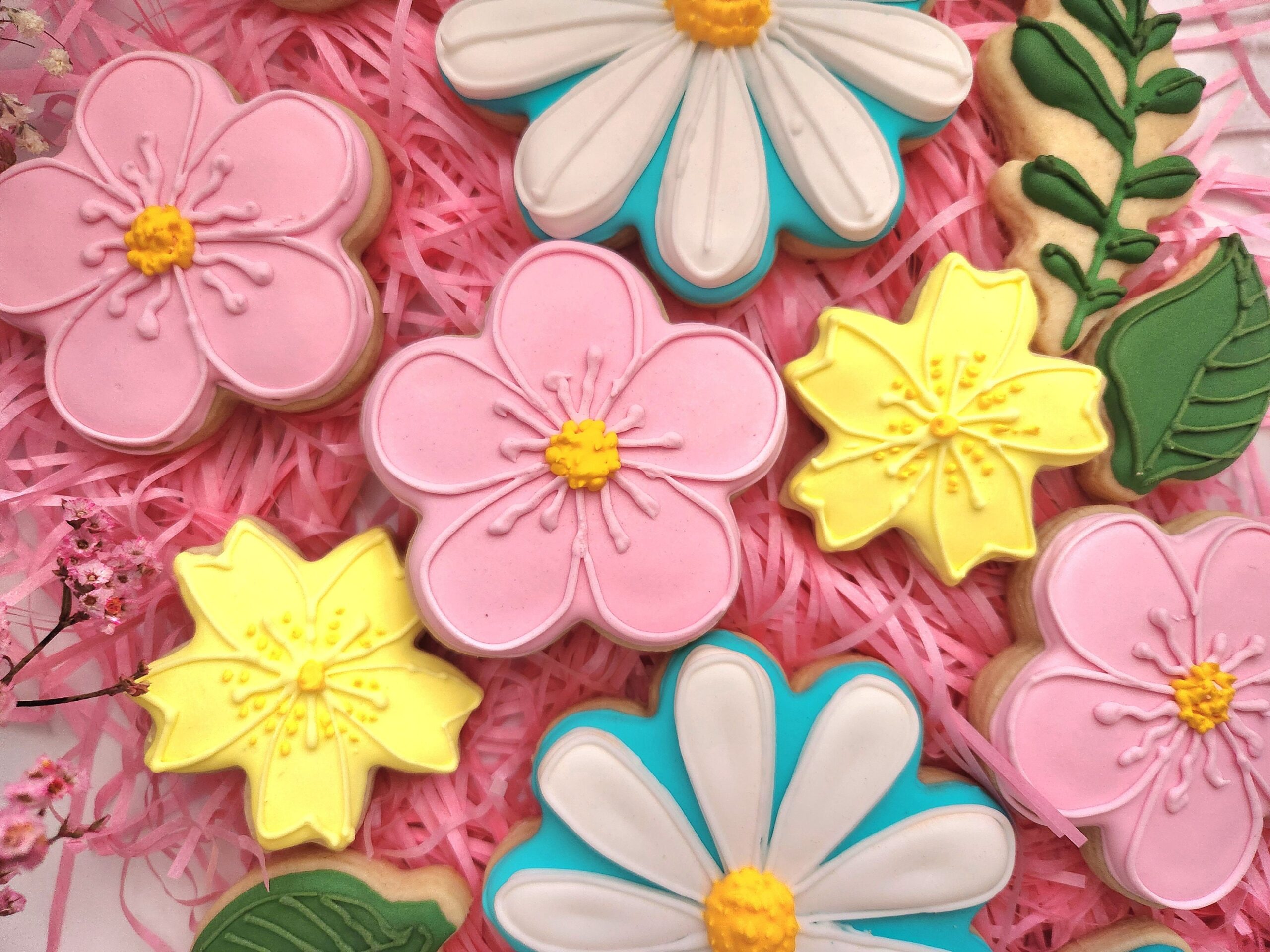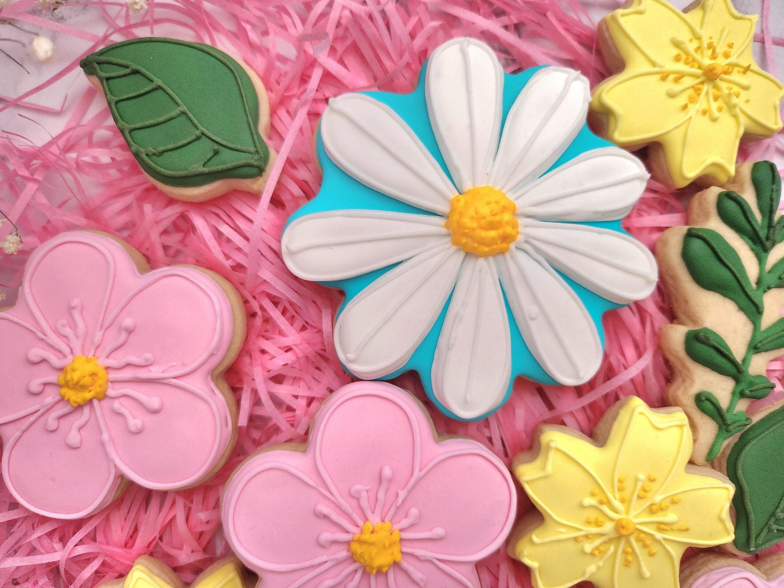 These cookies from 2 to 4 inches . Each cookie will packed separately in a plastic bag and then packed in a cute cartoon box with a clear window. Small flowers l packed 2 in a bag)