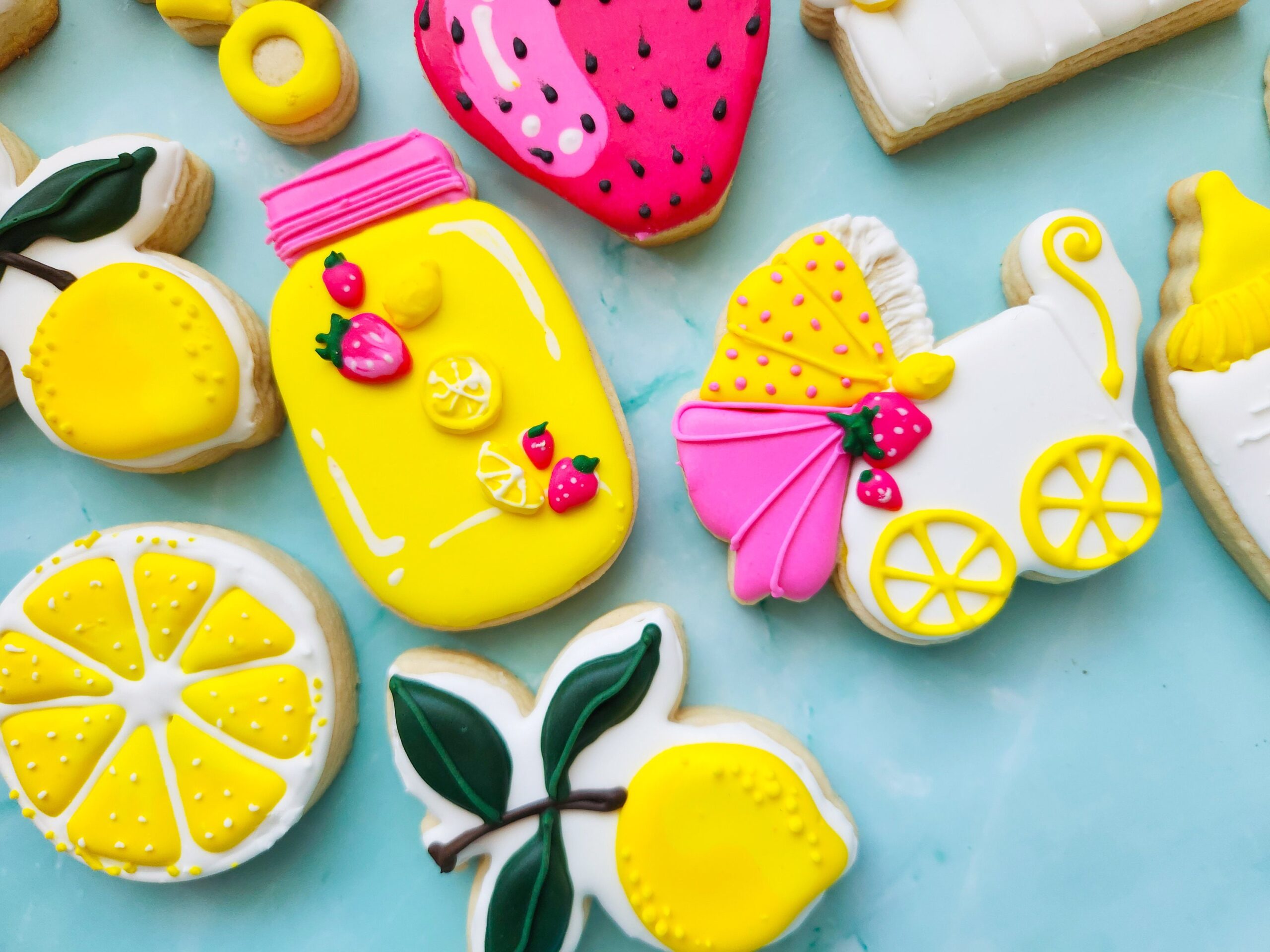 Lemon strawberry shugar cookies for babyshower, reveal party or baby’s b-day has a price per dozen (plus extra cookie or 2 in each box). Have a great taste on your choice (I recommended lemon-vanilla or strawberry taste for this set) and could be a nice addition to your party table or like a gift to someone special.